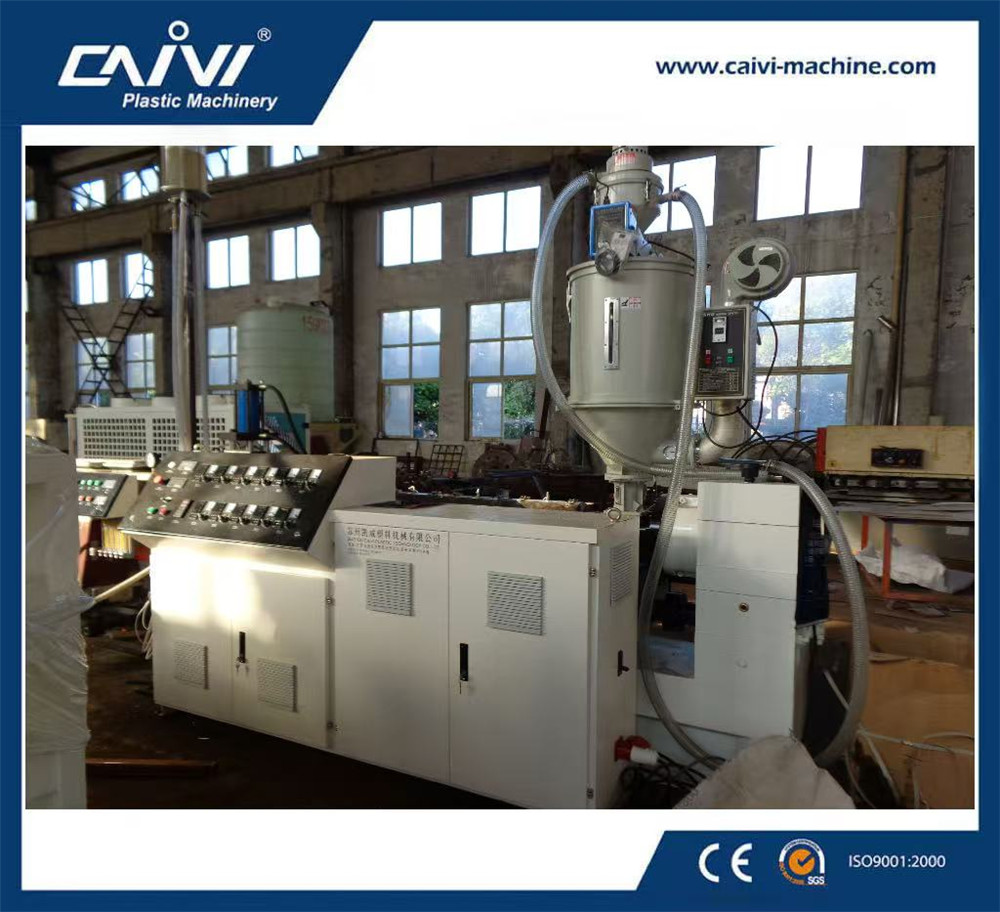 原材料→真空上料→材料干燥→單螺桿擠出機→螺旋式模具→低溫冷卻定徑套,高位水箱→水冷機→浸泡真空定型箱→浸入泡冷卻水箱→浸泡冷卻水箱→ 噴碼機→皮帶牽引機→雙工位收卷機→成品檢測包裝